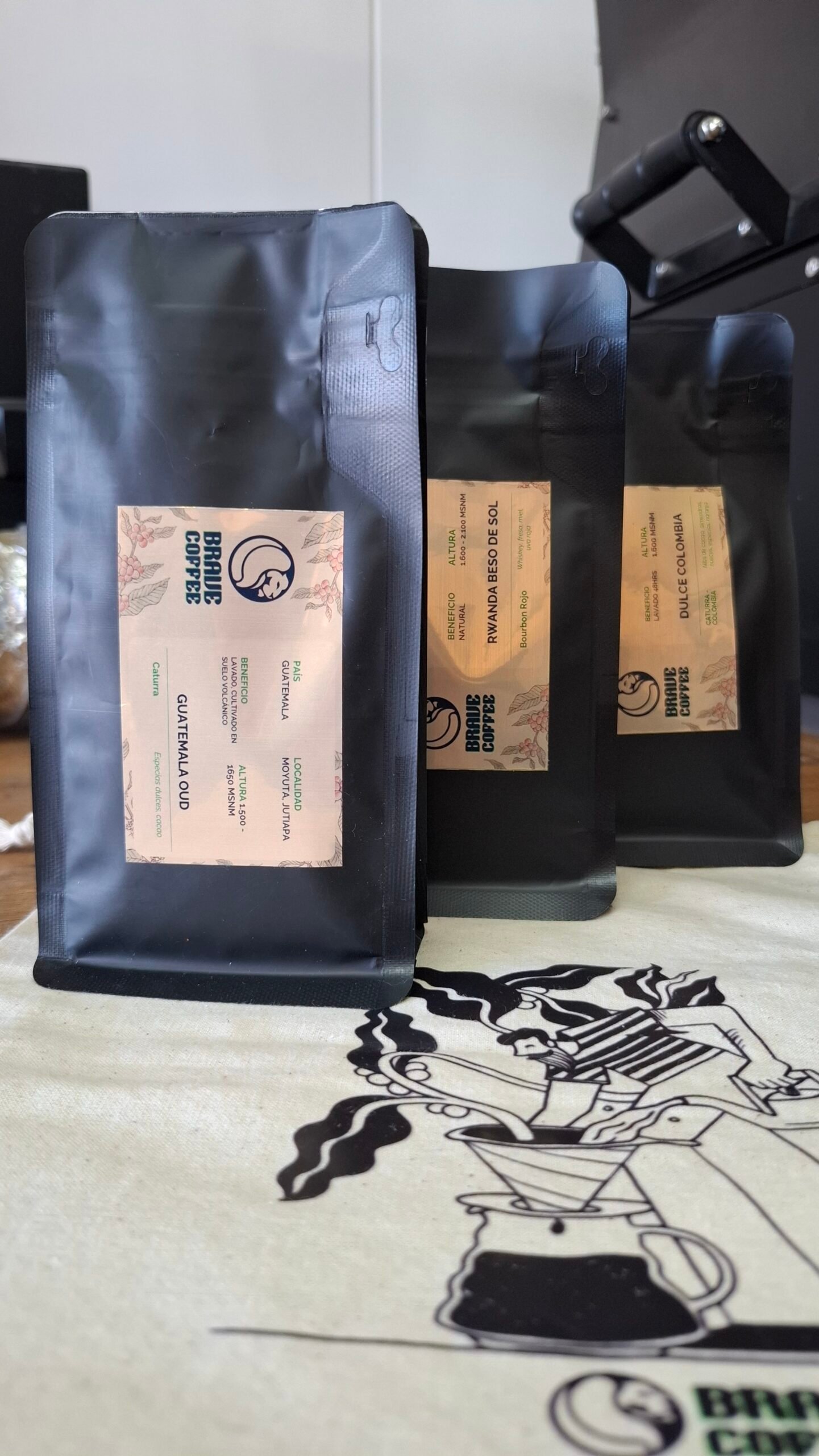 Prueba tres orígenes de café en un formato práctico y transportable. 80 grs de café en un packing especial, acompañado de nuestra bolsa de diseño exclusivo.